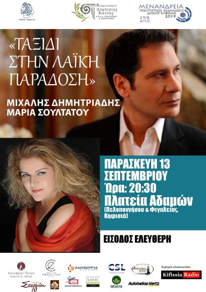 Ακολουθώντας τα μουσικά μονοπάτια της λαϊκής μουσικής η Μαρία Σουλτάτου και ο Μιχάλης Δημητριάδης, θα μας ταξιδέψουν με τραγούδια που σημάδεψαν μια ολόκληρη εποχή και παραμένουν ζωντανά, αυθεντικά, αγαπημένα