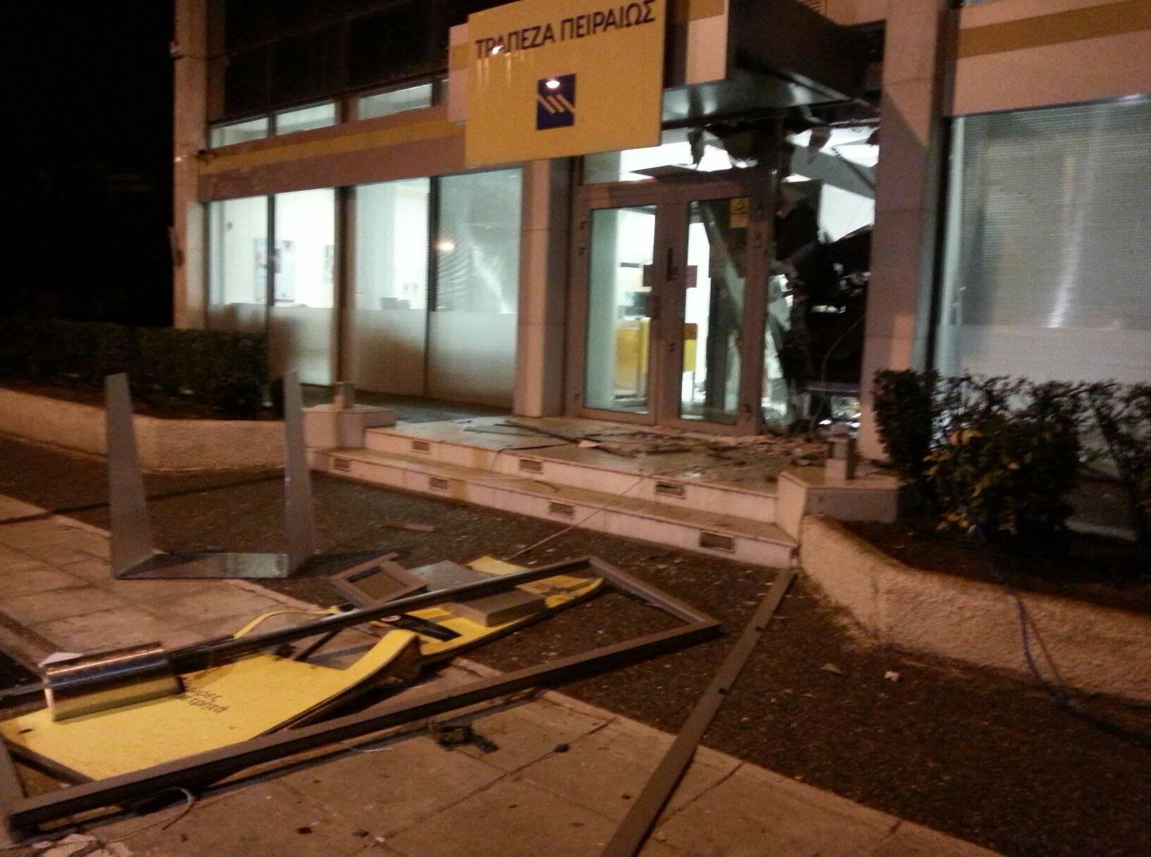 Τα ξημερώματα της Παρασκευής 29 Δεκεμβρίου άγνωστοι ανατίναξαν ATM της Τραπέζης Πειραιώς που βρίσκεται στον παράδρομο της εθνικής οδού στην Κηφισιά.