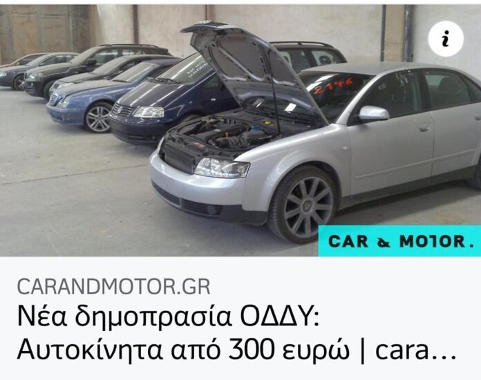 Επίσης, με μόλις 300 ευρώ μπορεί κανείς να αποκτήσει Opel Astra του 1999 και Ford Focus του 2001, ενώ με 350 ευρώ διαθέσιμα είναι Honda HR-V του 1998, VW Polo του 1996, Fiat Punto του 1995, Suzuki Vitara του 1998 και Citroen Saxo του 2002.)