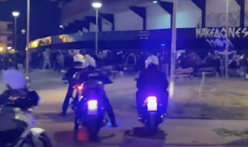 Λίγα λεπτά αργότερα, δυνάμεις των ΜΑΤ επιχείρησαν να διαλύσουν την συγκέντρωση των οπαδών του ΠΑΟΚ με αποτέλεσμα να προκληθεί ένταση. Στα πλάνα που του τοπικού μέσου, διακρίνονται δεκάδες οπαδοί. Όταν αξιωματικοί της ομάδας ΔΙΑΣ πλησιάζουν με μηχανής, δεκάδες φαίνεται να τρέπονται σε φυγή. Σύμφωνα με το thestival, οι αστυνομικοί προχώρησαν στην προσαγωγή ενός ατόμου.