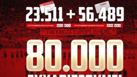 Ο Ολυμπιακός έχει πλέον 23.511 εγγεγραμμένα μέλη και 56.489 κατόχους κάρτας φιλάθλου.