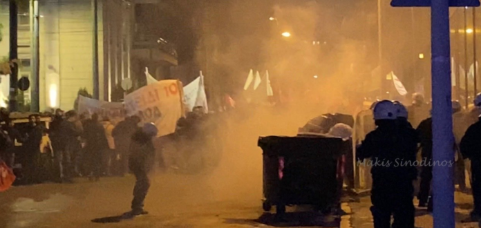 Εκτεταμένα επεισόδια βρίσκονται σε εξέλιξη έξω από τα γραφεία της HellenicTrain στο κέντρο της Αθήνας, από άτομα τα οποία συγκεντρώθηκαν σε διαμαρτυρία
