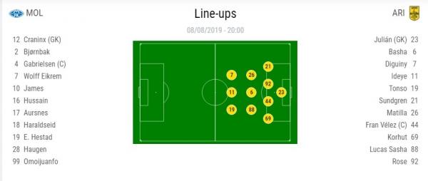 Ο Κουέστα θα είναι κάτω από τα δοκάρια, οι Σούντγκρεν και Κόρχουτ δεξιά και αριστερά στην άμυνα, με δίδυμο στόπερ τους Βέλεθ και Ρόουζ. Η τριάδα στο κέντρο αποτελείται από τους Μπάσα, Σάσα και Ματίγια και στην επίθεση οι Ντιγκινί και Τόνσο θα παίξουν πίσω από τον προωθημένο Ιντέγε.