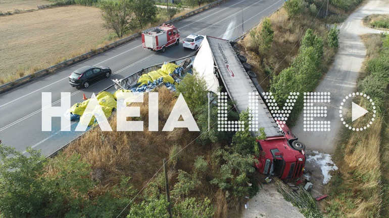 Ανατροπή νταλίκας στην Πατρών-Πύργου με έναν τραυματία