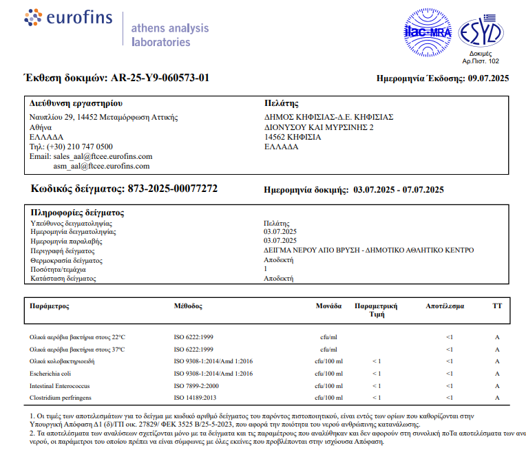 – ΔΕΙΓΜΑ ΝΕΡΟΥ ΑΠΟ ΒΡΥΣΗ – ΔΗΜΟΤΙΚΟ ΑΘΛΗΤΙΚΟ ΚΕΝΤΡΟ
