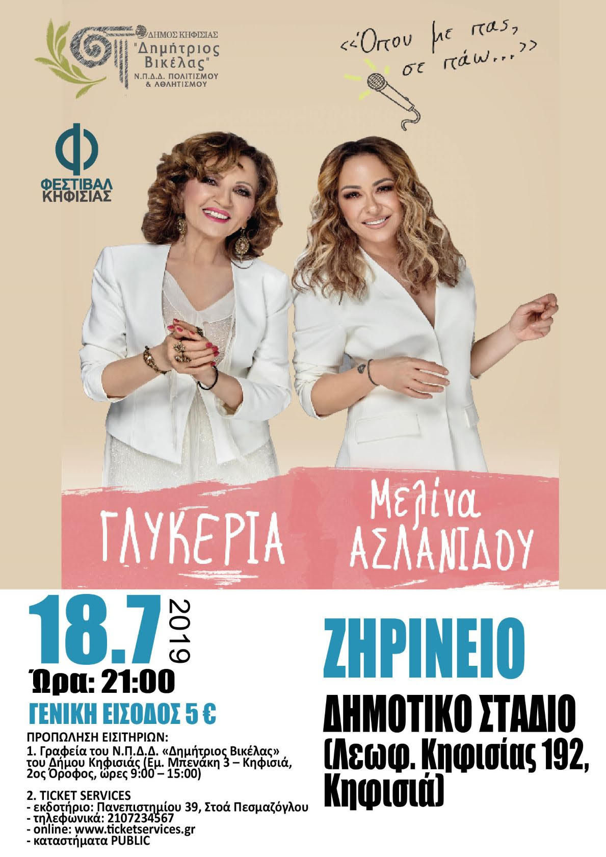 Η Γλυκερία, αυτή η τόσο σημαντική ερμηνεύτρια με αξιοσημείωτη πορεία και εκτός συνόρων, θεωρείται από πολλούς η πιο γνήσια λαϊκή τραγουδίστρια της γενιάς της. Η Μελίνα Ασλανίδου είναι μια από τις πιο γνωστές και αγαπημένες ερμηνεύτριες του λαϊκού και έντεχνου τραγουδιού. Η μοναδική χροιά της φωνής της μαγεύει το κοινό.