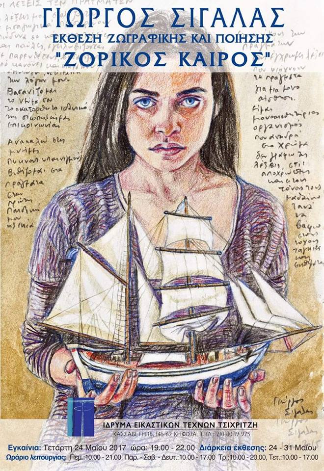 Ο Γιώργος Σιγάλας και το Ίδρυμα Εικαστικών Τεχνών Τσιχριτζή (Κασσαβέτη 18 Κηφισιά ) σας προσκαλόυν στην έκθεση ζωγραφικής και ποίησης <<Ζόρικος Καιρός>> σήμερα Τετάρτη 24 Μαΐου στις 19.00