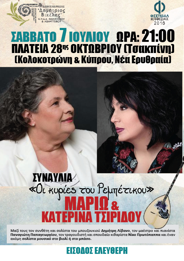 «Οι κυρίες του Ρεμπέτικου» – Μαριώ & Κατερίνα Τσιρίδου στη Ν. Ερυθραία