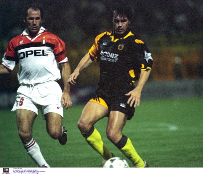 Τη σεζόν 1994-95 η ΑΕΚ βρέθηκε για πρώτη φορά στην ιστορία της σε όμιλο Champions League. Αντίπαλοι ήταν ο Άγιαξ, η Μίλαν και η Casino Ζάλτσμπουργκ. Η Ένωση τελείωσε τη διοργάνωση χωρίς νίκη, αλλά κατάφερε να πάρει δύο ισοπαλίες. 0-0 με τη Μίλαν στη Νέα Φιλαδέλφεια και 0-0 στη Βιέννη με την Ζάλτσμπουργκ. Στα υπόλοιπα τέσσερα ματς γνώρισε ισάριθμες ήττες με τέρματα 3 υπέρ και 9 κατά.