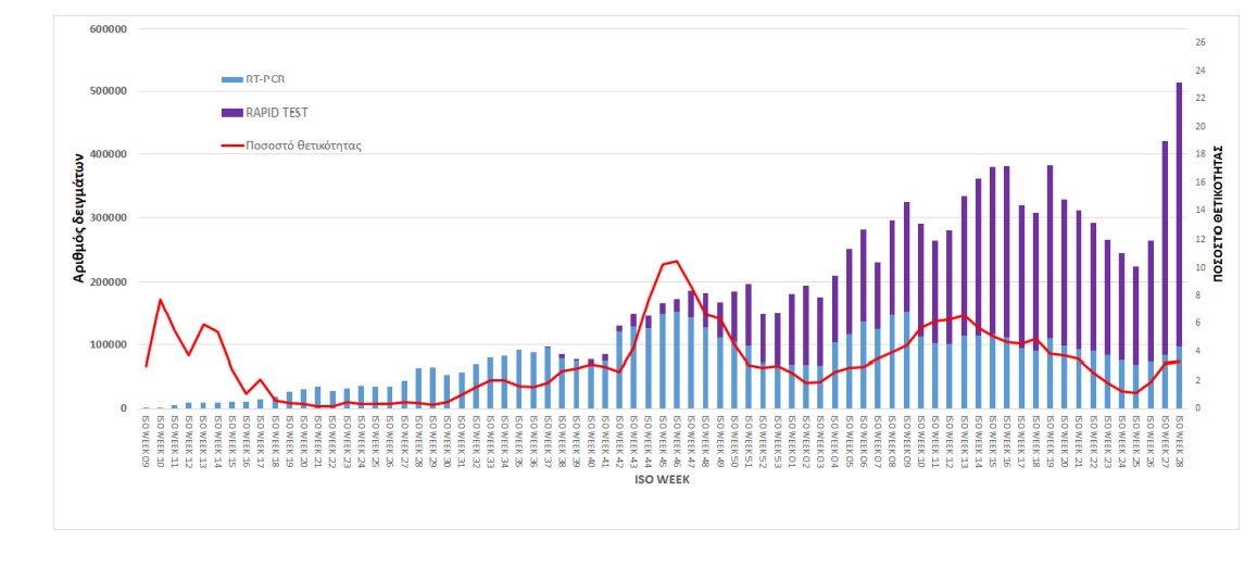 Ποσοστό θετικότητας ανά ISO WEEK με βάση το σύνολο των ελεγχθέντων δειγμάτων COVID-19
