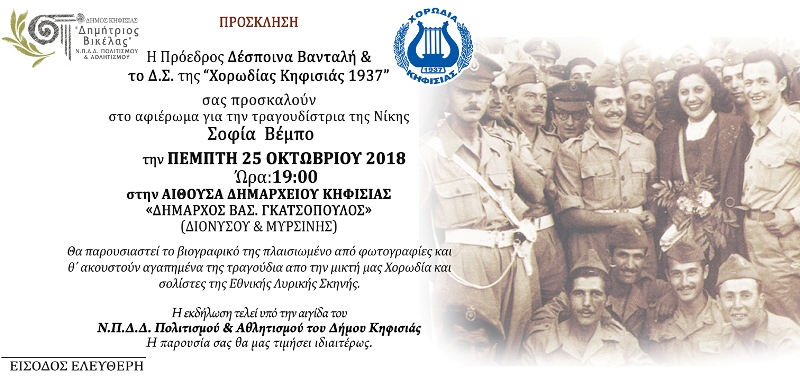 Αφιέρωμα στη Σ. Βέμπο απόψε 25/10 στο Δημαρχείο Κηφισιάς