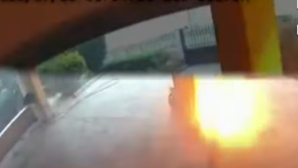 Στα πλάνα φαίνεται ο οδηγός διερχόμενης μηχανής να σώζεται κυριολεκτικά στο δευτερόλεπτο, αφού από την έκρηξη εκσφενδονίζεται μια μεταλλική αντλία με φονική ταχύτητα, και τελικά ισοπεδώνει μια καγκελόπορτα και καρφώνεται στην είσοδο της πολυκατοικίας.