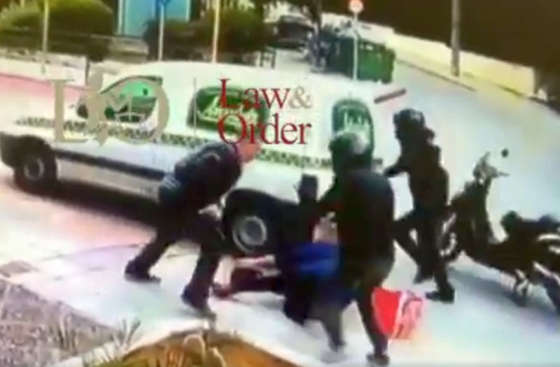 Στο βίντεο φαίνεται ολοκάθαρα ότι μία μηχανή με δύο άτομα σταματάει ακριβώς δίπλα από έναν άνδρα. Αρχικά τρέχει μια γυναίκα η οποία πέφτει κάτω, ενώ ο άνδρας αντιδρά χτυπώντας τον έναν από τους δράστες. Στη συνέχεια οι κακοποιοί ρίχνουν κάτω τον άτυχο άνδρα και αρπάζουν την τσάντα.