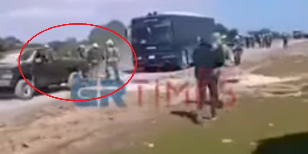 Είναι συγκλονιστικό το βίντεο του GRTimes.gr όπου φαίνεται ένας από τους κατοίκους να κάνει όπισθεν με το αγροτικό του αυτοκίνητο και επιχειρεί να… πατήσει τους άνδρες των ΜΑΤ και να τους ρίξει πάνω στην κλούβα που ήταν εκεί σταθμευμένη.