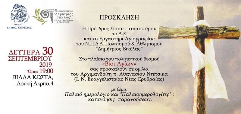 Βίοι Αγίων. Ομιλία 30/09 στη Βίλλα Κώστα στη Νέα Ερυθραία
