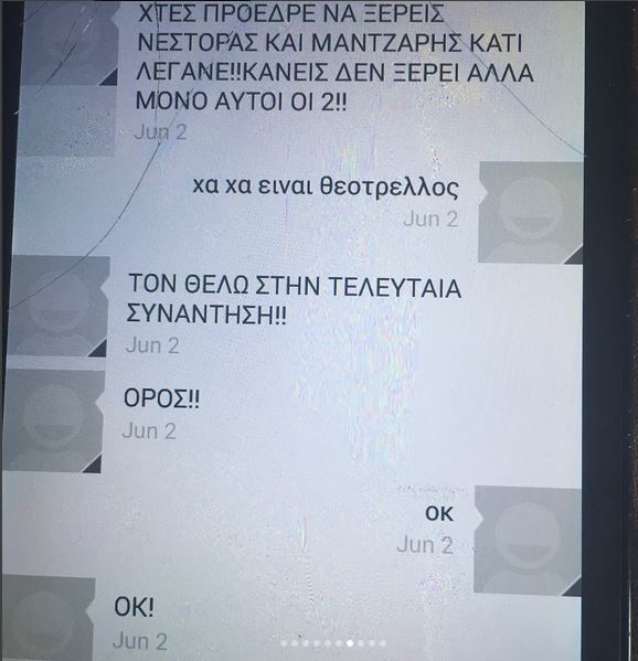 Ο διοικητικός ηγέτης της ΚΑΕ Παναθηναϊκός, Δημήτρης Γιαννακόπουλος, ανέβασε στο προφίλ του στο instagram τις συζητήσεις που είχε με τον μάνατζερ του Βαγγέλη Μάντζαρη
