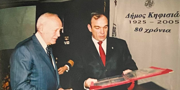 Είχα την τιμή το 2005 ως Δήμαρχος Κηφισιάς, να του παραδώσω το χρυσό μετάλλιο της πόλης και την απόφαση του Δημοτικού Συμβουλίου με την οποία ανακηρύχθηκε Επίτιμος Δημότης της πόλης μας, παρουσία σημαντικών προσωπικοτήτων όπως ο σημερινός Πρωθυπουργός Κυριάκος Μητσοτάκης, ο πρώην Πρωθυπουργός Τζ. Τζανετάκης, πλήθος βουλευτών από όλα τα πολιτικά κόμματα, του τοποτηρητή της Μητροπόλεως Σεβασμιωτάτου κκ. Νικόλαου, της Προέδρου του Κοινωφελούς Ιδρύματος Ιωάννης Σ. Λάτσης, Δημάρχων και εκπροσώπων της Αυτοδιοίκησης, καθώς και δεκάδων πολιτών του Δήμου μας.