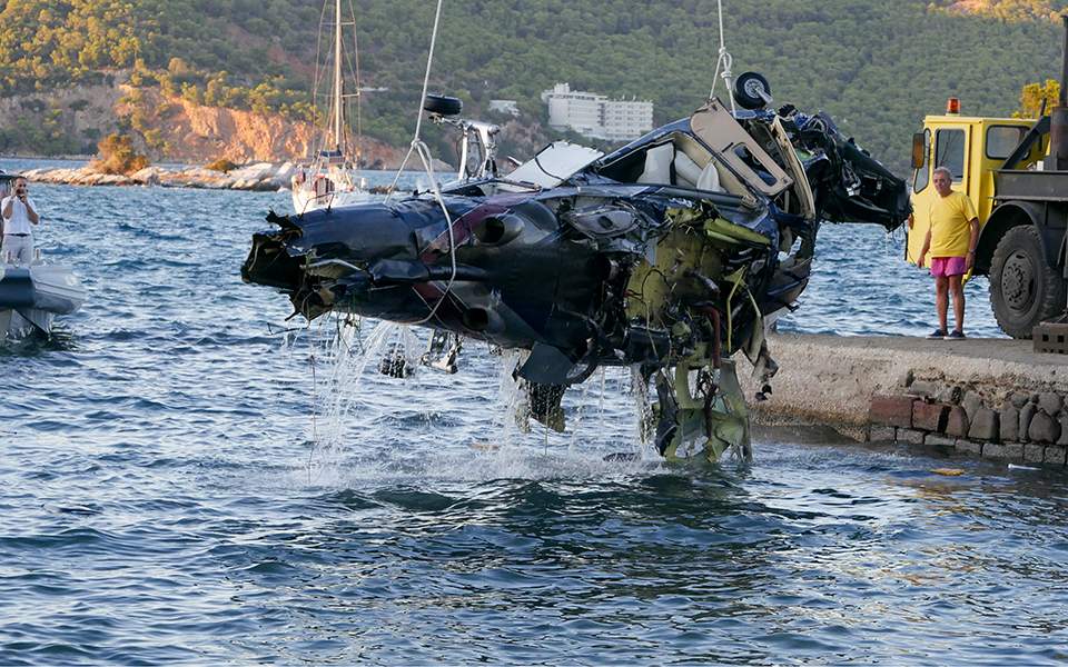 Οι υπηρεσίες του Λιμενικού κατάφεραν να ανασύρουν από τα νερά την άτρακτο του ελικοπτέρου και του έλικα αργά χθες το βράδυ, ενώ τα συντρίμμια θα εξεταστούν από πραγματογνώμονες ώστε να διαπιστωθεί εάν μπορούν να δώσουν απαντήσεις για την τραγωδία.