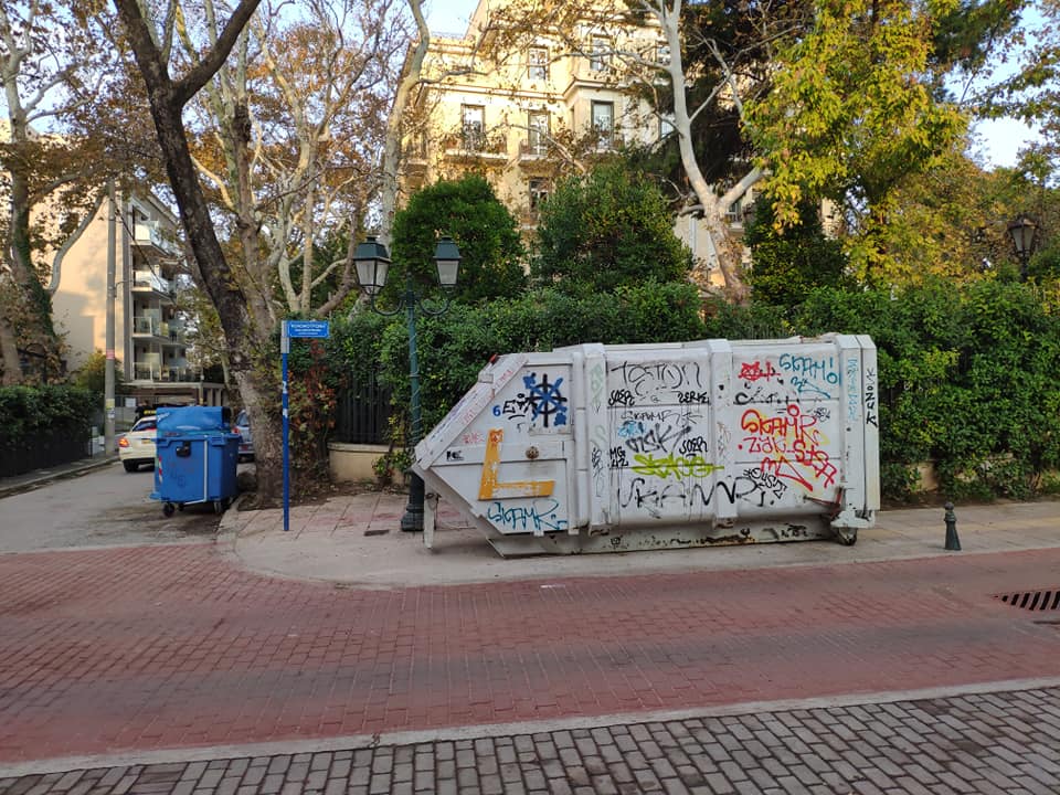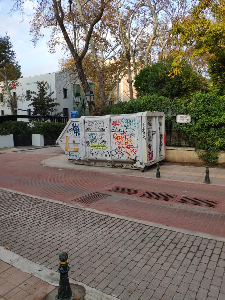 Ο γνωστός μας κάδος που βρισκόταν στην γωνία Κολοκοτρώνη και Μυκόνου (Κεφαλάρι) επέστρεψε στην θέση του μετά την απομάκρυνση του για τα έργα οδοποιίας στην Κολοκοτρώνη.