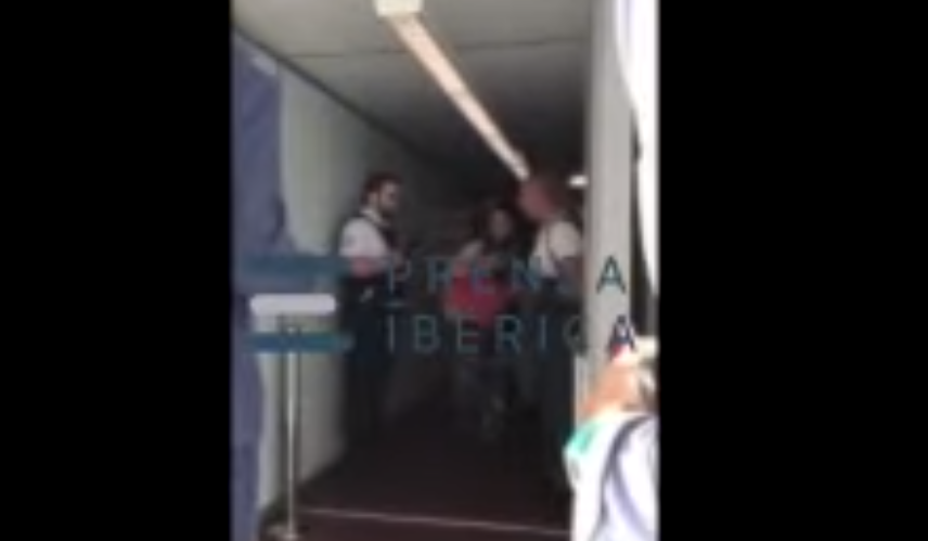 Βίντεο που αναρτήθηκε στον ιστότοπο της ισπανικής εφημερίδας La Nueva Espagna δείχνει τον κ. Βαρουφάκη να ζητεί από τον αστυνομικό στα αγγλικά να μιλήσει με τον προϊστάμενό του.