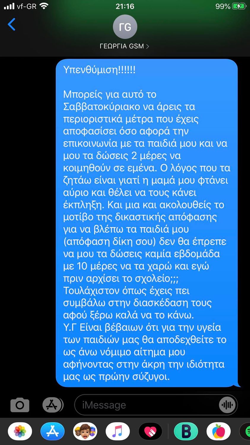 Το μνμ αυτό έχει παραλήπτη την (μαμα) των κοριτσιών και πρώην σύζυγο μου από το πρωί.