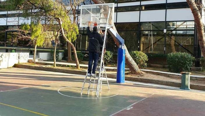 Και για να το κάνει αυτό αναγκάζεται καθημερινά να προσπαθεί να συνετίσει τους όποιους ασυνείδητους πολίτες της περιοχής. Αποτέλεσμα; Όπως θα δείτε στις παρακάτω εικόνες, ο αντίδήμαρχος Γλυφάδας και πρώην μπασκετμπολίστας του Ολυμπιακού και της ΑΕΚ, Περικλής Δορκοφίκης να αναγκάζεται να “ξηλώνει” ο ίδιος τα καλάθια από κεντρική ανοιχτή αθλητική εγκατάσταση της περιοχής, στην οποία παρά τους περιορισμούς κάποιοι ασυνείδητοι συνέχιζαν να συναθροίζονται για να παίξουν μπάσκετ.