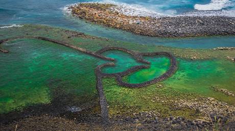 Πετώντας πάνω από την θάλασσα της Ταϊβάν, θα δείτε κάτι περίεργο: Πέτρινοι τοίχοι (παγίδες), κατά μήκος της…