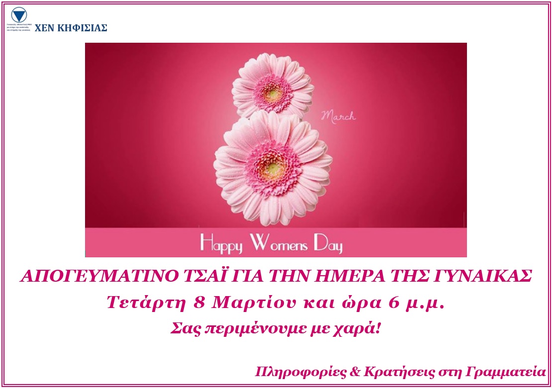 ΤΟΠΙΚΑ Η ΧΕΝ Κηφισιάς σας προσκαλεί σήμερα 8 Μαρτίου Από john - 8 Μαρτίου 2017 0 325 FacebookTwitterPinterestWhatsApp