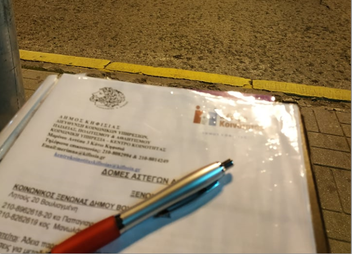 Η Κοινωνική Υπηρεσία του Δήμου Κηφισιάς με κλιμάκιο Κοινωνικών Λειτουργών, πραγματοποίησε street work για πρώτη φορά κατά τις βραδινές ώρες, σε κεντρικά σημεία της πόλης μας για την καταγραφή των αστέγων – επαιτών, την Παρασκευή 21 Φεβρουαρίου. Η ενέργεια αυτή έρχεται να προστεθεί στις εβδομαδιαίες επισκέψεις σε διάφορα σημεία του Δήμου μας, που διεξάγει η υπηρεσία.