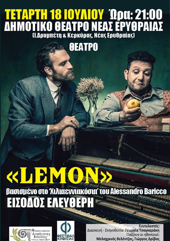 ΤΟΠΙΚΑ Θεατρική παράσταση Lemon απόψε 18/07 στο Δημοτικό Θέατρο στη Νέα Ερυθραία Από john - 18 Ιουλίου 2018 0 276 FacebookTwitterPinterestWhatsApp