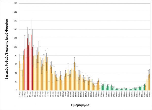 -Αυξημένη (84%) σε σχέση με τη μέση τιμή των δύο αμέσως προηγούμενων μετρήσεων της Δευτέρας 12/7 και της Τρίτης 13/7.