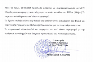 Το Παναρκαδικό Νοσοκομείο επιβεβαίωσε επίσημα ότι υπάρχει θετικό κρούσμα covid στην Τρίπολη και ότι ο ασθενής βρίσκεται σε κατ’ οίκον περιορισμό.