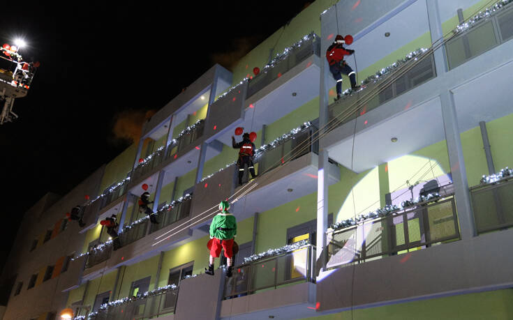 Ντυμένοι Άγιοι Βασίληδες κατέβαιναν με σχοινιά από όροφο σε όροφο, μοιράζοντας δώρα, ενώ μαζί με τους καλικάντζαρους μοίρασαν και δώρα στο προαύλιο του νοσοκομείου.