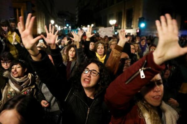 «Δεν είναι κακοποίηση, είναι βιασμός» και «Φθάνει με την πατριαρχική δικαιοσύνη» φώναζε το πλήθος των διαδηλωτών, οι περισσότερες γυναίκες, που είχαν συγκεντρωθεί μπροστά από το υπουργείο Δικαιοσύνης στη Μαδρίτη.