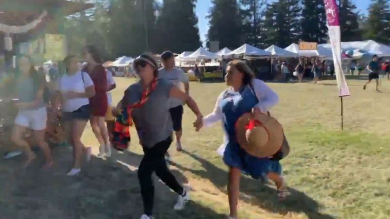 Βίντεο που μεταφορτώθηκαν σε ιστότοπους κοινωνικής δικτύωσης εικονίζουν ανθρώπους που βρίσκονται στην εκδήλωση να σκορπίζουν καθώς ακούγονται εκπυρσοκροτήσεις στο υπόβαθρο. «Μα τι γίνεται;» διερωτάται μια γυναίκα σε ένα από τα βίντεο. «Ποιος αρχίζει να πυροβολεί σε ένα φεστιβάλ για το σκόρδο;» απορεί.