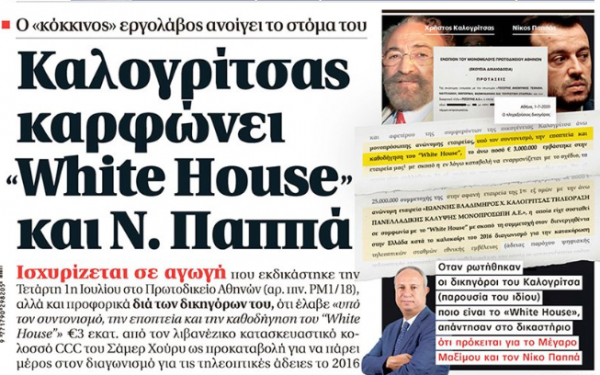 Όπως αναφέρει η εφημερίδα, όταν ρωτήθηκαν οι δικηγόροι του Καλογρίτσα (παρουσία του ιδίου) ποιο είναι το «White House», απάντησαν στο δικαστήριο ότι πρόκειται για το Μέγαρο Μαξίμου και τον Νίκο Παππά.