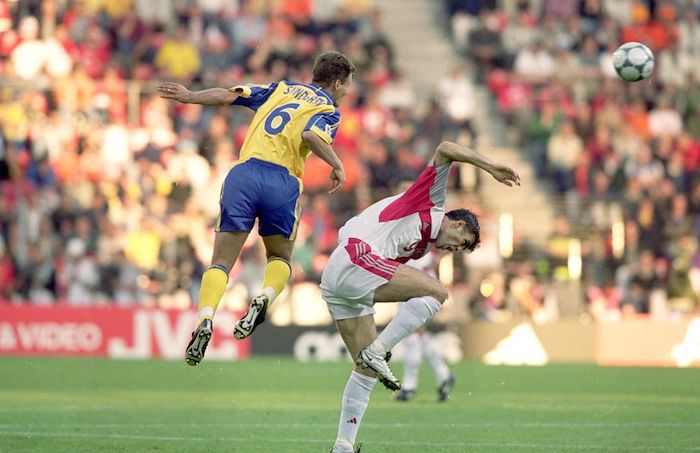 Στιγμές μοναδικές με 150.000 κόσμο στη Σαραγόσα να στήνει τρελό πανηγύρι για την ομάδα. “Ελάχιστα το πιστεύω ότι ήμουν μέρος όλου αυτού”, λέει ο μπαμπάς, Γκάρι Σούντγκρεν που είναι 30 φορές διεθνής με την Εθνική Σουηδίας και, μεταξύ άλλων, έχει παίξει στο EURO 2000 από όπου η παρακάτω φωτογραφία, σε μονομαχία με τον Χακάν Σουκούρ.