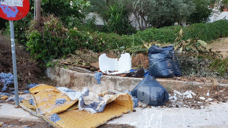 Τα διαφόρων ειδών σκουπίδια, όπως κλαδιά-μπάζα- έπιπλα κλπ, παραμένουν για εβδομάδες στα πεζοδρόμια,  χωρίς να τα μαζεύει ο δήμος, παρόλο που έχει ειδοποιήσεις από πολίτες.