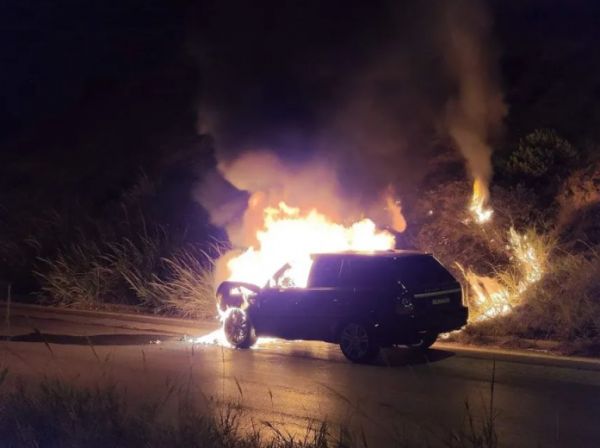 Το αυτοκίνητο βρίσκεται στον παράδρομο της εθνικής κι έχει τυλιχθεί στις φλόγες ενώ σύμφωνα με αυτόπτες μάρτυρες ακούγονται εκρήξεις.
