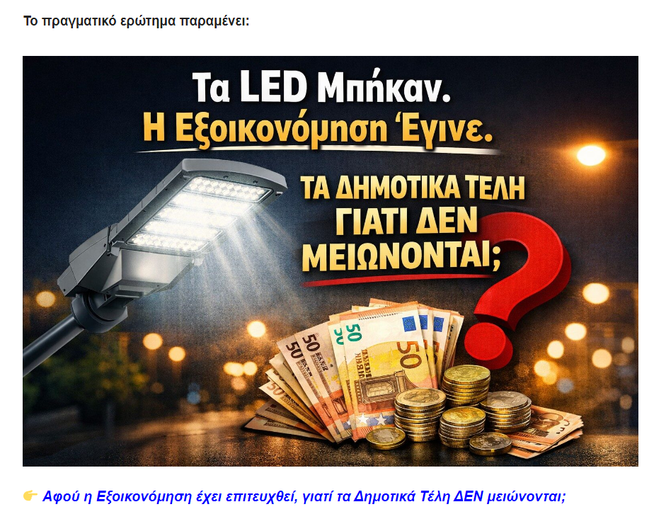 Σ.Σ 3.000.000 κόστισε στους Δημότες η αλλαγή λαμπτήρων και ουσία σχεδόν μηδέν.