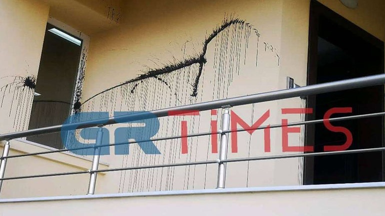 Οι άγνωστοι δράστες πέταξαν τρικάκια και έγραψαν συνθήματα για τη στέγαση.