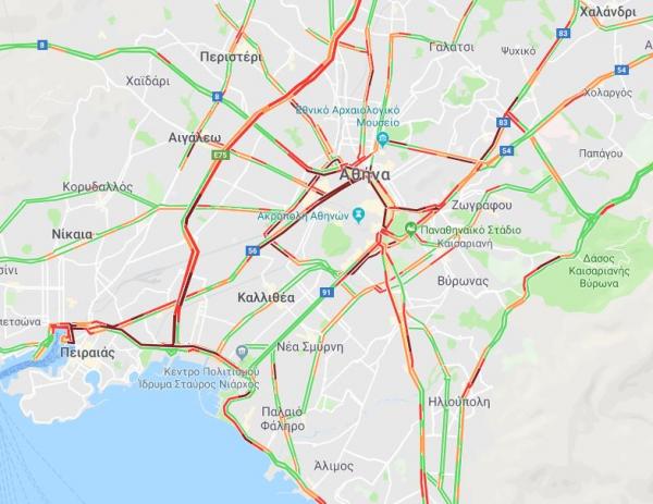 Τα μεγαλύτερα προβλήματα σημειώνονται στο κέντρο της Αθήνας με μποτιλιάρισμα σε Πειραιώς προς Ομόνοια, Σταδίου, Φιλελλήνων, άνοδο Συγγρού από Καλλιρρόης και πάνω και στην κάθοδο της Βασ. Σοφίας.