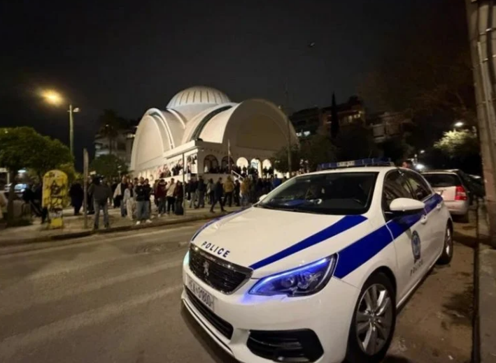 Η εικόνα όμως φέτος ήταν εντελώς διαφορετική, καθώς ανάμεσα στους πιστούς που είχαν συγκεντρωθεί για την Ακολουθία της Αναστάσεως κινούνταν διμοιρίες των ΜΑΤ.