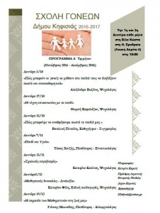 Ξεκινά και πάλι από Δευτέρα στις 3 Οκτωβρίου 2016, στις 18:00, η Σχολή Γονέων του Δήμου Κηφισιάς.