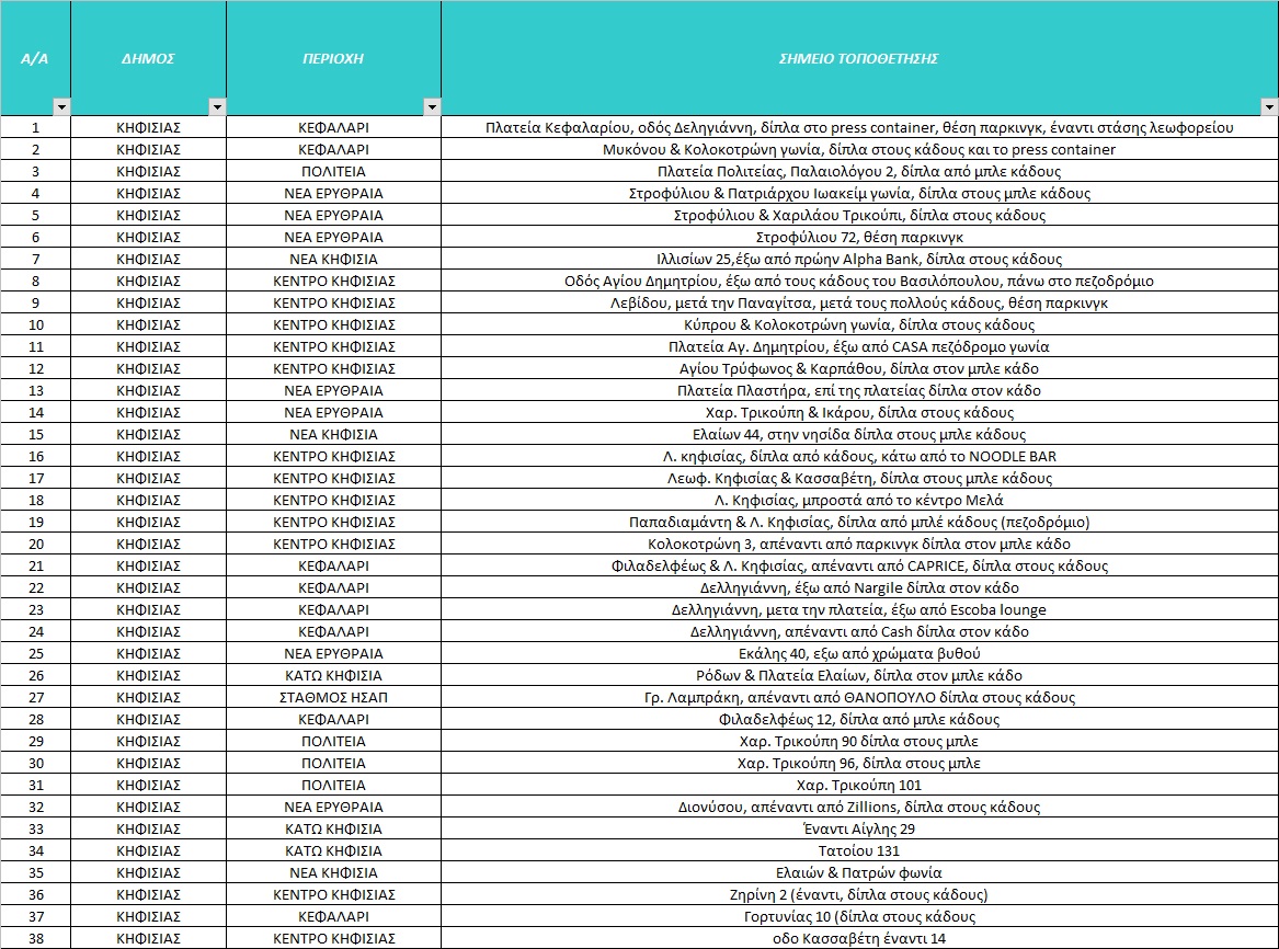 Δείτε στη λίστα τα σημεία των μπλέ κάδων :