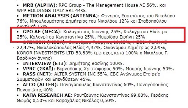 Υπήρξε όμως ένα μεσοδιάστημα, που ο κος Τάκης ήταν εκτός πολιτικής, απερίσπαστος στις επιστημονικές του αναζητήσεις. Τι έκανε τότε; Δούλευε ως αναλυτής αρχικώς και ως πρόεδρος κατόπιν στην GPO, την αγαπημένη εταιρεία του (παλαιού) MEGA. Δεν ήταν μόνος του, είχε και παρέα. Ποιους; Όλο το Καλογριτσέικο – εκτός από τον μπαμπά. Ο Ιωάννης Καλογρίτσας (υιός Χρήστου) κατείχε 25% της GPO, η Ηλέκτρα Καλογρίτσα (κόρη Χρήστου) 25%, η Κωνσταντίνα Καλογρίτσα (κόρη Χρήστου) 25%, και το υπόλοιπο 25% κάποια Ειρήνη Μαυρίδου, η οποία κατά διαβολική σύμπτωση είναι σύζυγος του κου Τάκη. Άρα όταν ο κος Τάκης ισχυρίζεται με στόμφο: “εγώ με τον ΧΡΗΣΤΟ Καλογρίτσα δεν είμαι, ούτε υπήρξα ποτέ συνεταίρος” λέει αλήθεια, αν το δεις επιστημονικώς.