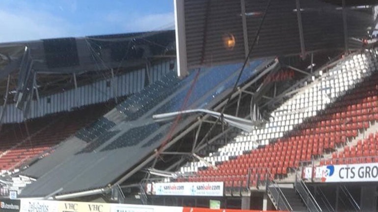 Οι ισχυροί άνεμοι προκάλεσαν χθες Σάββατο την κατάρρευση τμήματος από το στέγαστρο του γηπέδου της ολλανδικής ποδοσφαιρικής ομάδας AZ Άλκμααρ, χωρίς να υπάρξουν θύματα, καθώς εκείνη την ώρα δεν υπήρχε κόσμος στις κερκίδες.