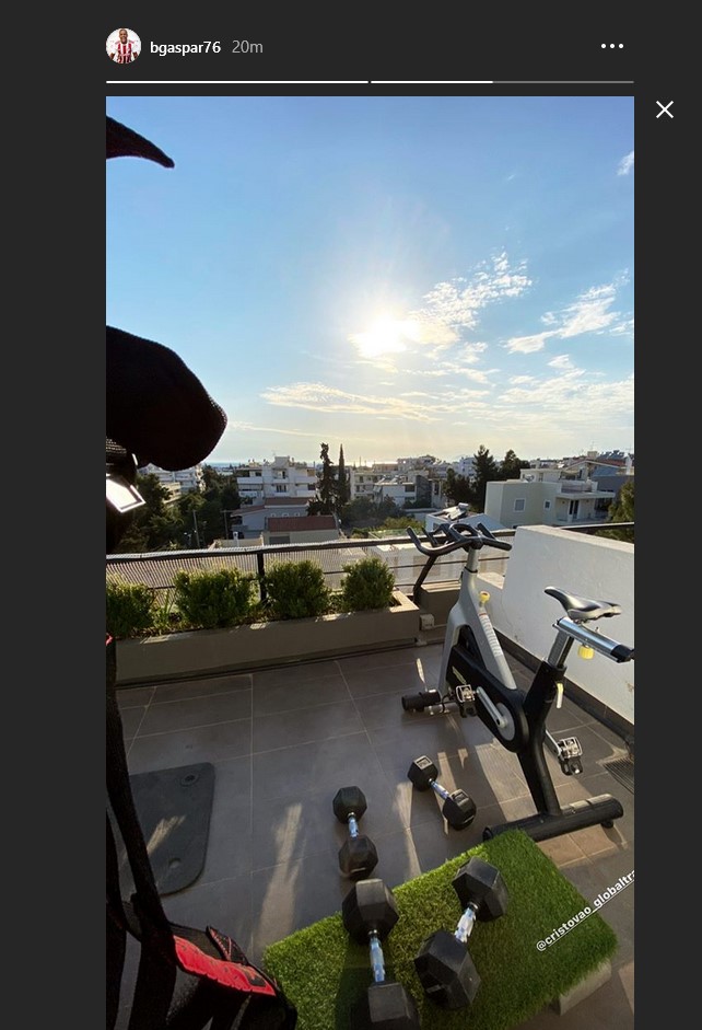 Οι ποδοσφαιριστές του Ολυμπιακού συνεχίζουν τις ατομικές προπονήσεις στο σπίτι ώστε να διατηρούνται σε καλή φυσική κατάσταση ενόψει της επανέναρξης του πρωταθλήματος.
