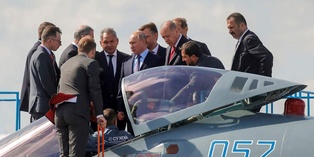 ΚΟΣΜΟΣ Ο Ερντογάν φωτογραφήθηκε με ρωσικό μαχητικό Sukhoi SU-35 Από john - 27 Αυγούστου 2019 0 217 FacebookTwitterPinterestWhatsApp O Ρετζέπ Ταγίπ Ερντογάν ξεκίνησε το ταξίδι του στη Μόσχα και μαζι με τον Ρώσο ομόλογό του επισκέφθηκε την έκθεση αεροναυπηγικής. Οι δυο ηγέτες φωτογραφήθηκαν μπροστά στο ρωσικό μαχητικό SU-35 και συνομίλησαν με τους Ρώσους πιλότους.
