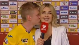 Ευτυχισμένος ήταν ο Ουκρανός διεθνής Αλεξάντερ Ζιντσένκο μετά το 5-0 επί της Σερβίας και έδωσε ένα φιλί στην εκρηκτική Ουκρανή δημοσιογράφο, Βλάντα Σένταν.